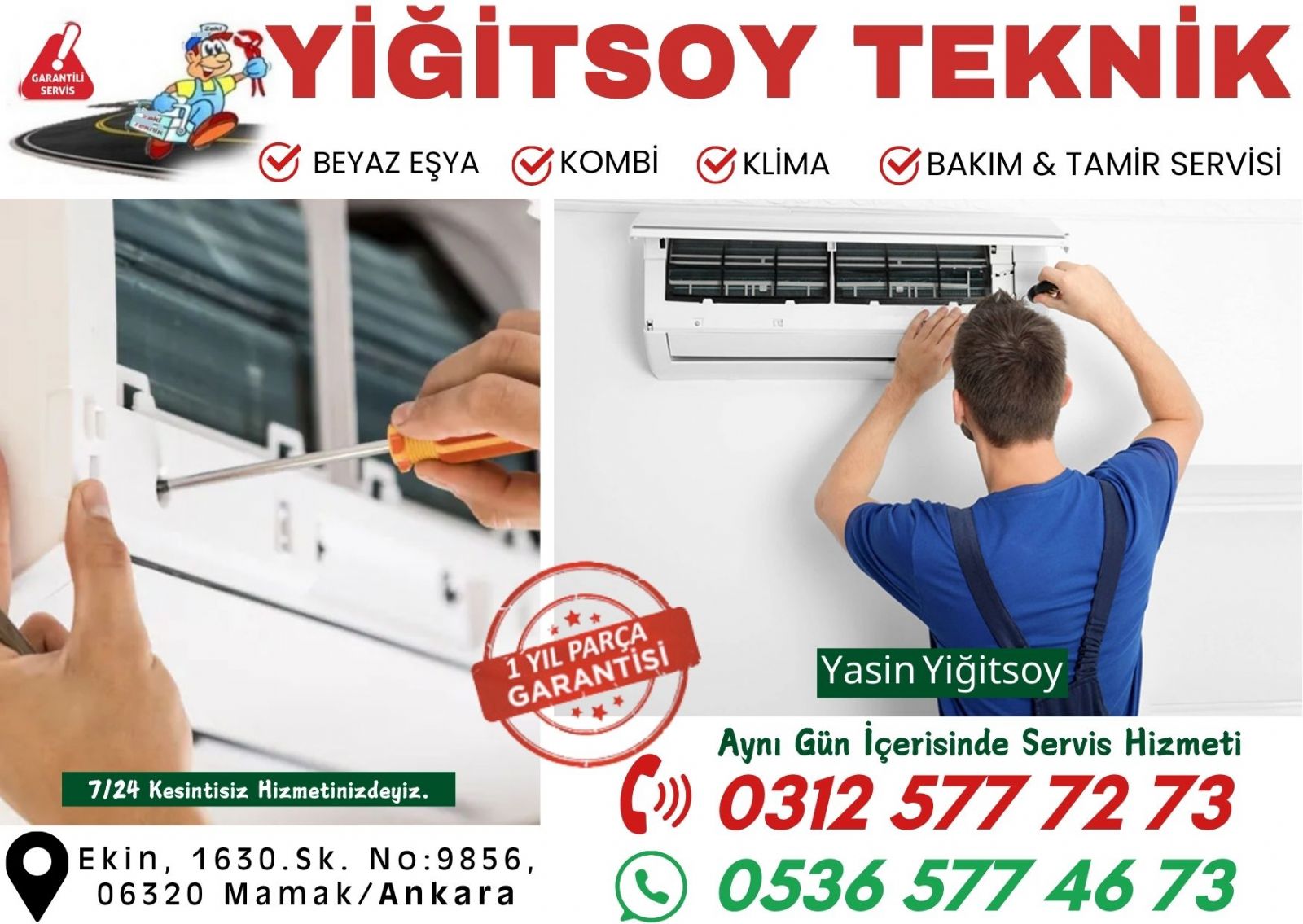 Mamak Klima Servisi olarak, klima sorunlarınıza en iyi çözümleri sunmak için uzman bir ekip ve son teknoloji ekipmanlar kullanıyoruz. Klimaların düzenli bakımı, arıza tespiti, onarımı ve montajı konularında uzman olan ekibimiz, her türlü sorunu çözmek için hazırdır.